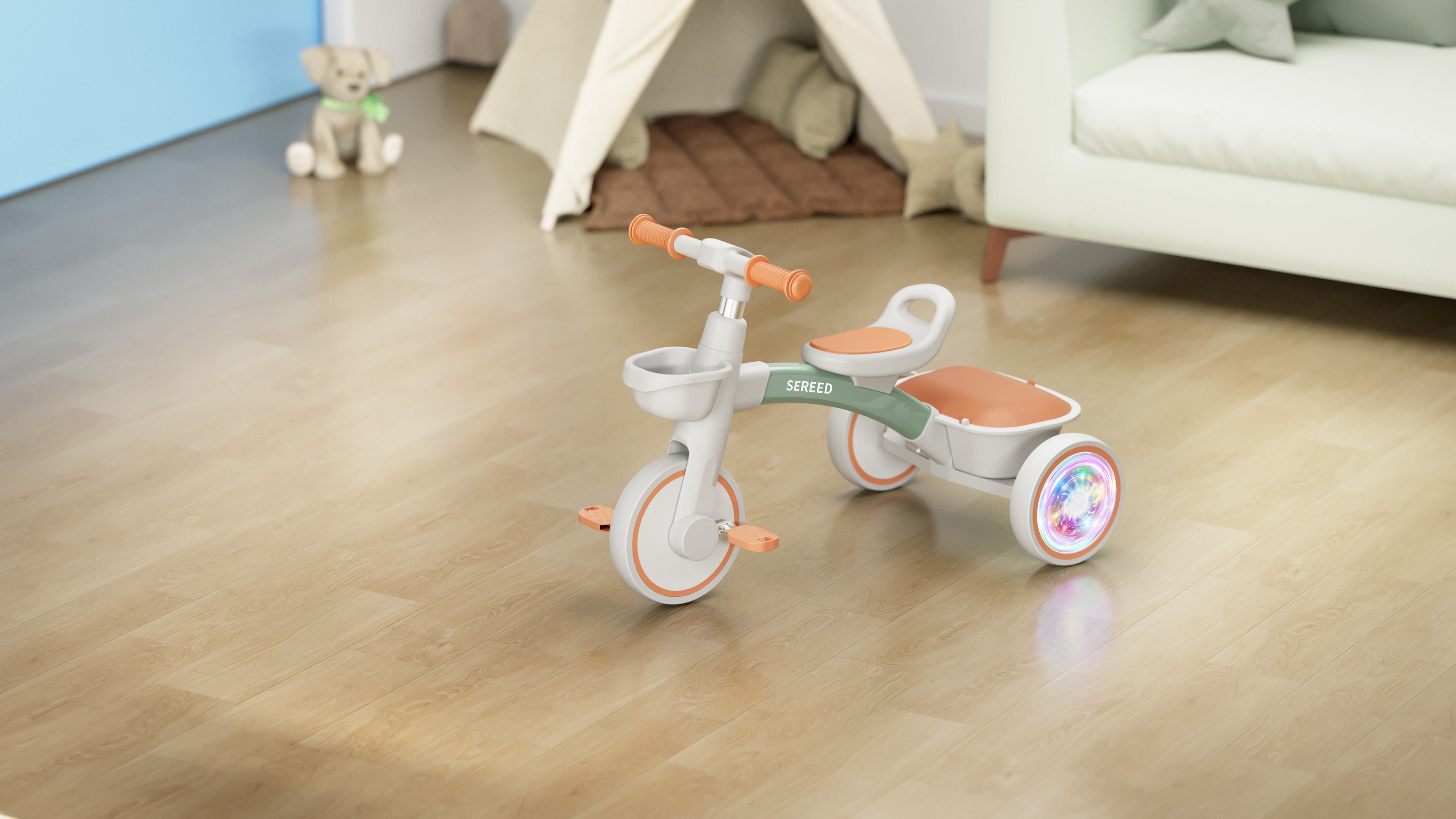 Un bebé de un año está lleno de energía y curiosidad. La bicicleta de equilibrio para bebés SEREED ayuda a los bebés a desarrollar fuerza y equilibrio.